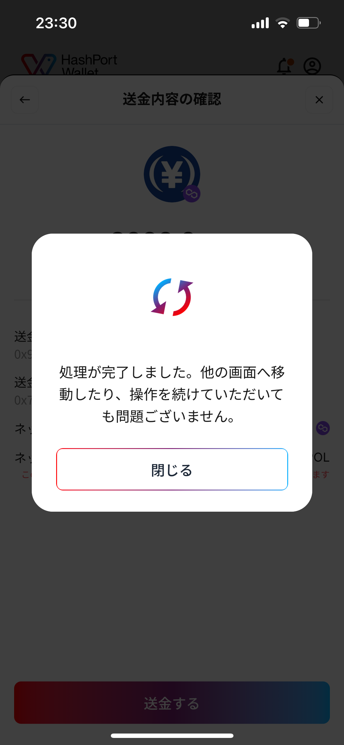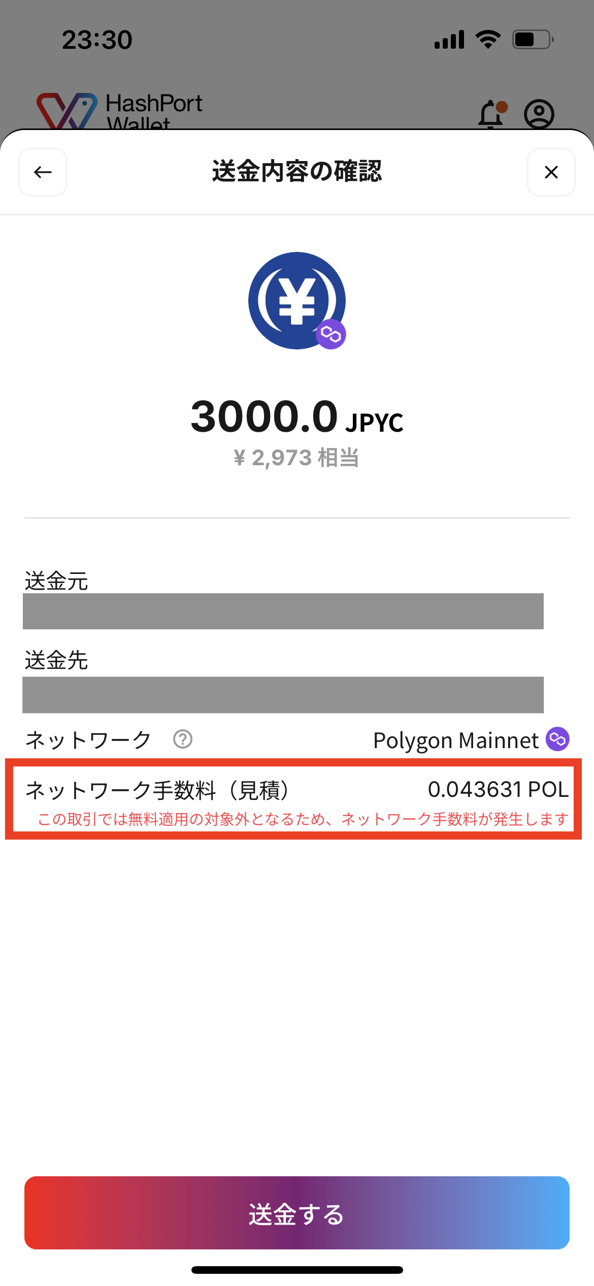 スワップなどせずに日本円で購入したJPYCをガス代を気にせず、そのままウォレットに送金することができるのは体験として素晴らしいですね!