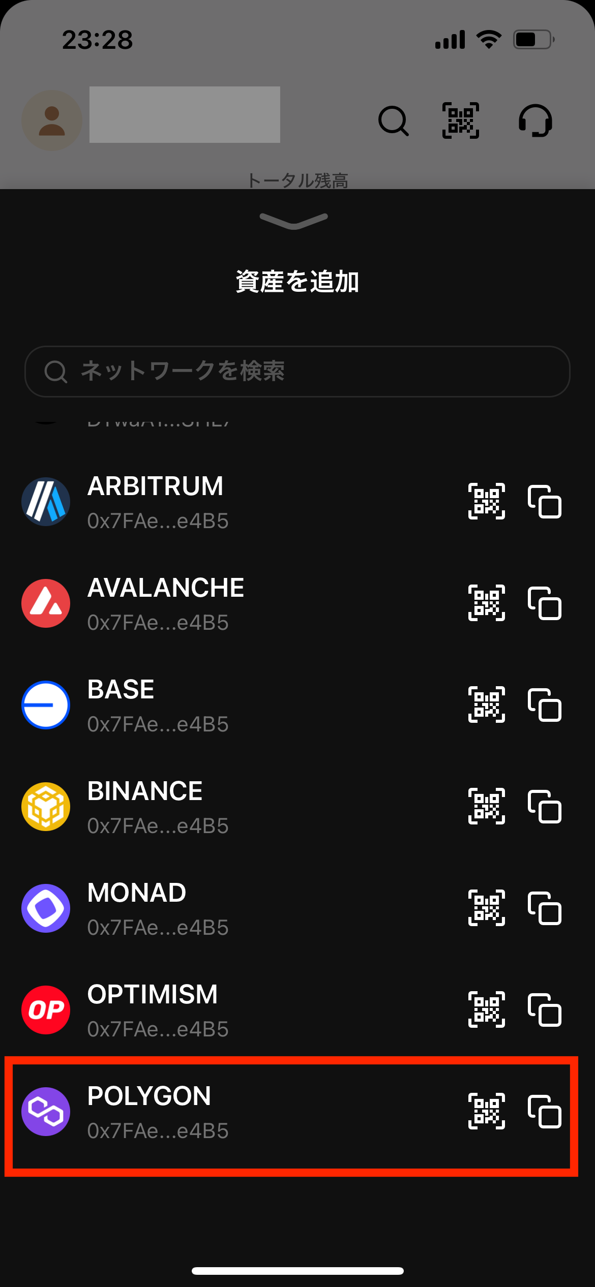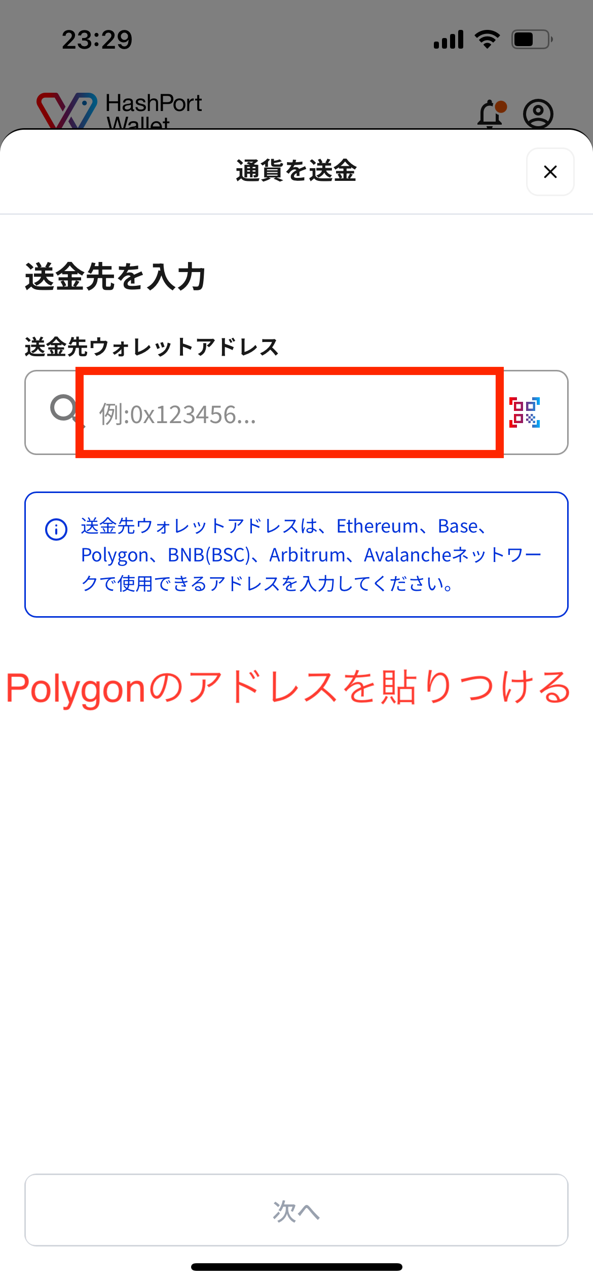HashPort WalletからTriaウォレットに送金する上で、僅かながらPolygonのネットワーク手数料(ガス代)が発生するので、HashPort WalletにPolygonを用意しておく必要があります。