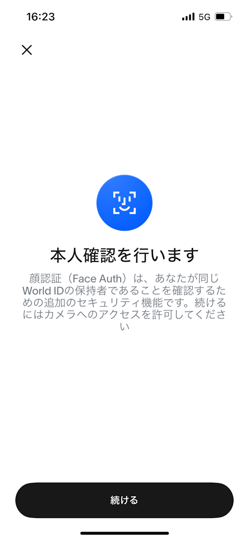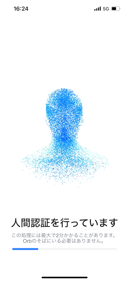 World Appを開いて、QRコードをOrbに見せると、人間認証が始まりました!👇