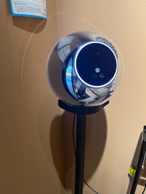 Orb(オーブ)は、Tools for Humanityが開発した球体型の専用デバイスです。このデバイスで虹彩(目の模様)をスキャンし、「世界でただ一人の実在する人間である」ことを認証します。