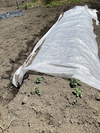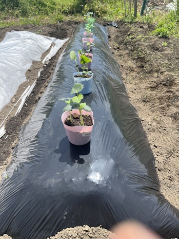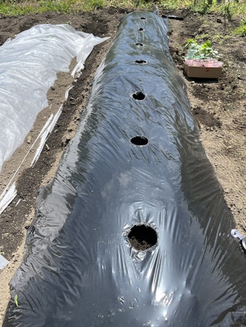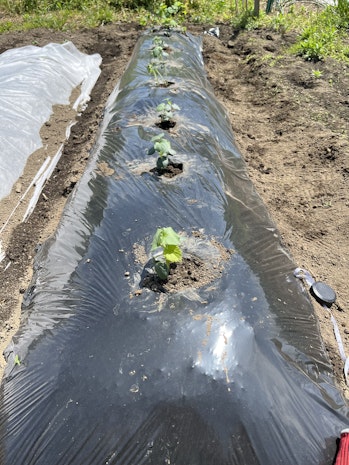 前々回の1話「土づくり・畝づくりの回」にて、土づくり→畝づくり→マルチ張りまで実施しています。