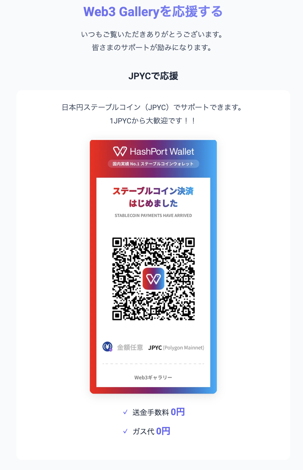 今後、Web3 Gallery内において、機能拡充をしていく予定なので、決済手段でも活用したいと思っています。